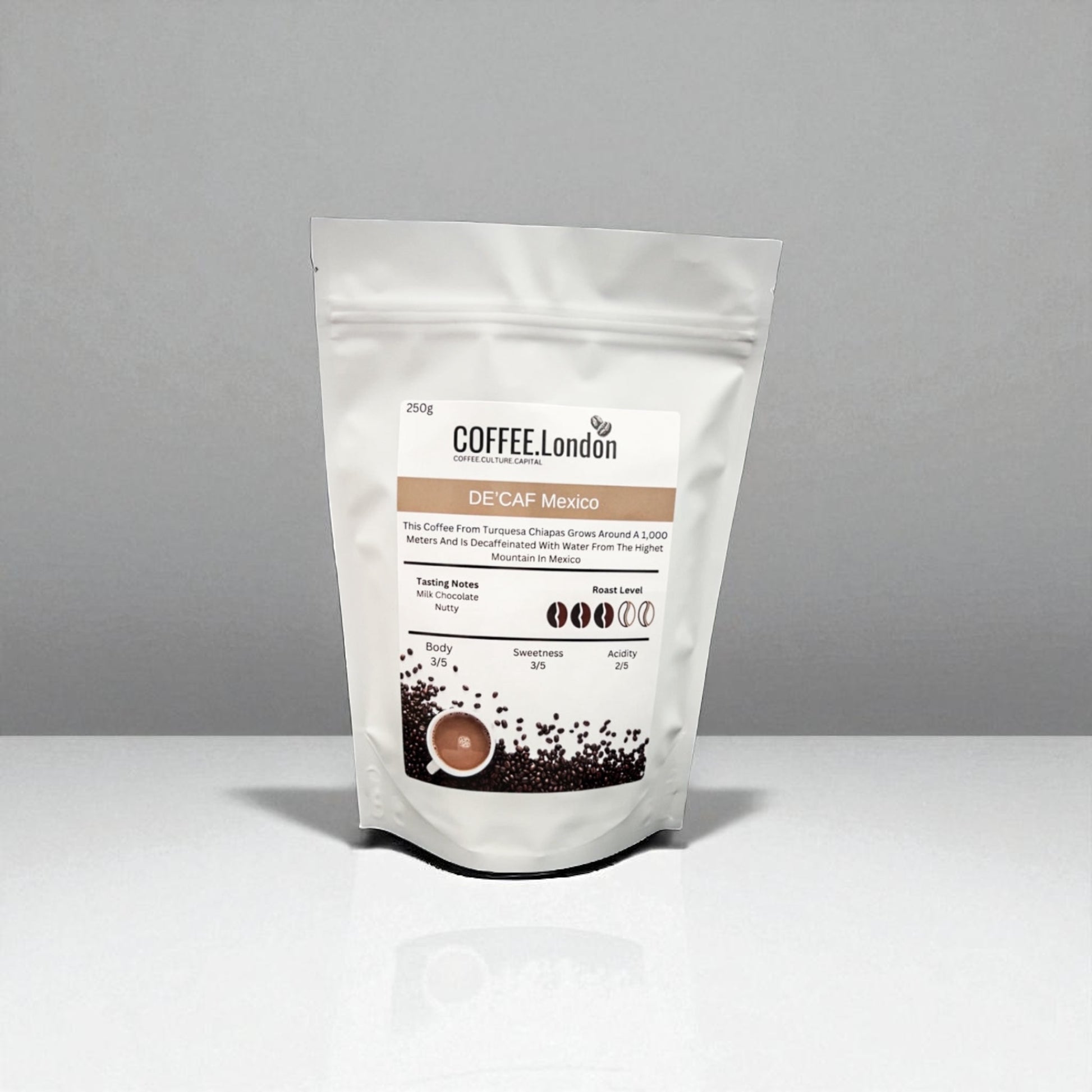Our decaf beans are from Brazil and have been carefully sourced to ensure the coffee is smooth and consistent throughout the year.